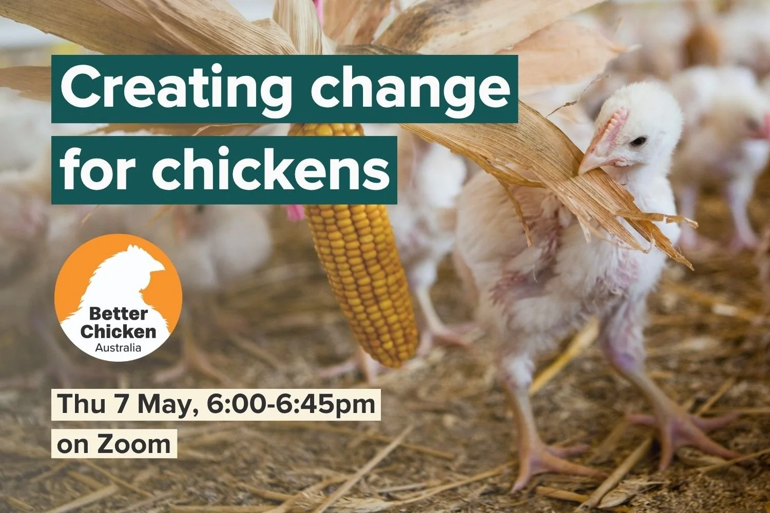 Join us to find out what Better Chicken Australia is doing to improve the lives of millions of chickens raised for meat each year.